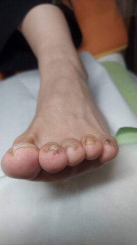 これまで別のケア施設で巻き爪のケアを受けられており、同じB/Sでのケアを4〜5回続けてこられたそうですが、なかなか効果を実感できず、不安を感じていらっしゃいました。